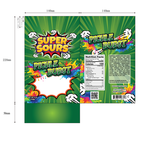 Tangy, zesty, and extreme. Pickle Burst delivers a bold dill pickle flavor with a sharp sour kick. The ultimate treat for pickle lovers who want something loud and unexpected. 6oz of pure madness.