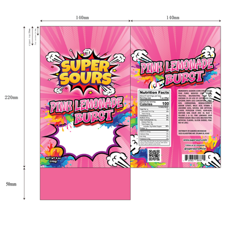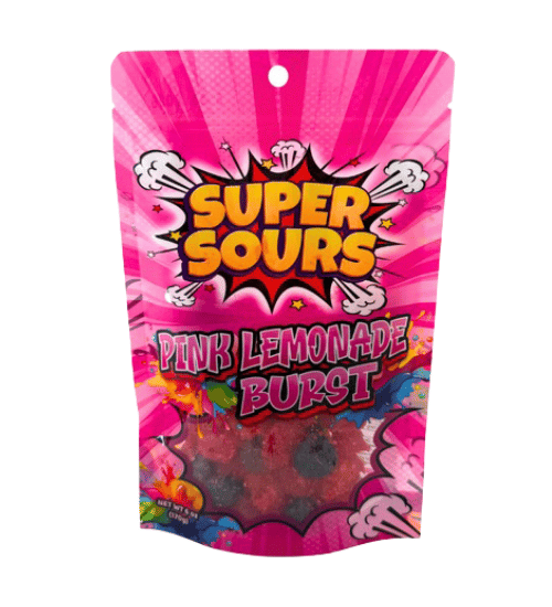 Fresh, zesty, and electric. Pink Lemonade Burst combines refreshing citrus flavor with a sharp sour coating. The perfect balance of tangy and sweet for a summer sour vibe. 6oz bag.